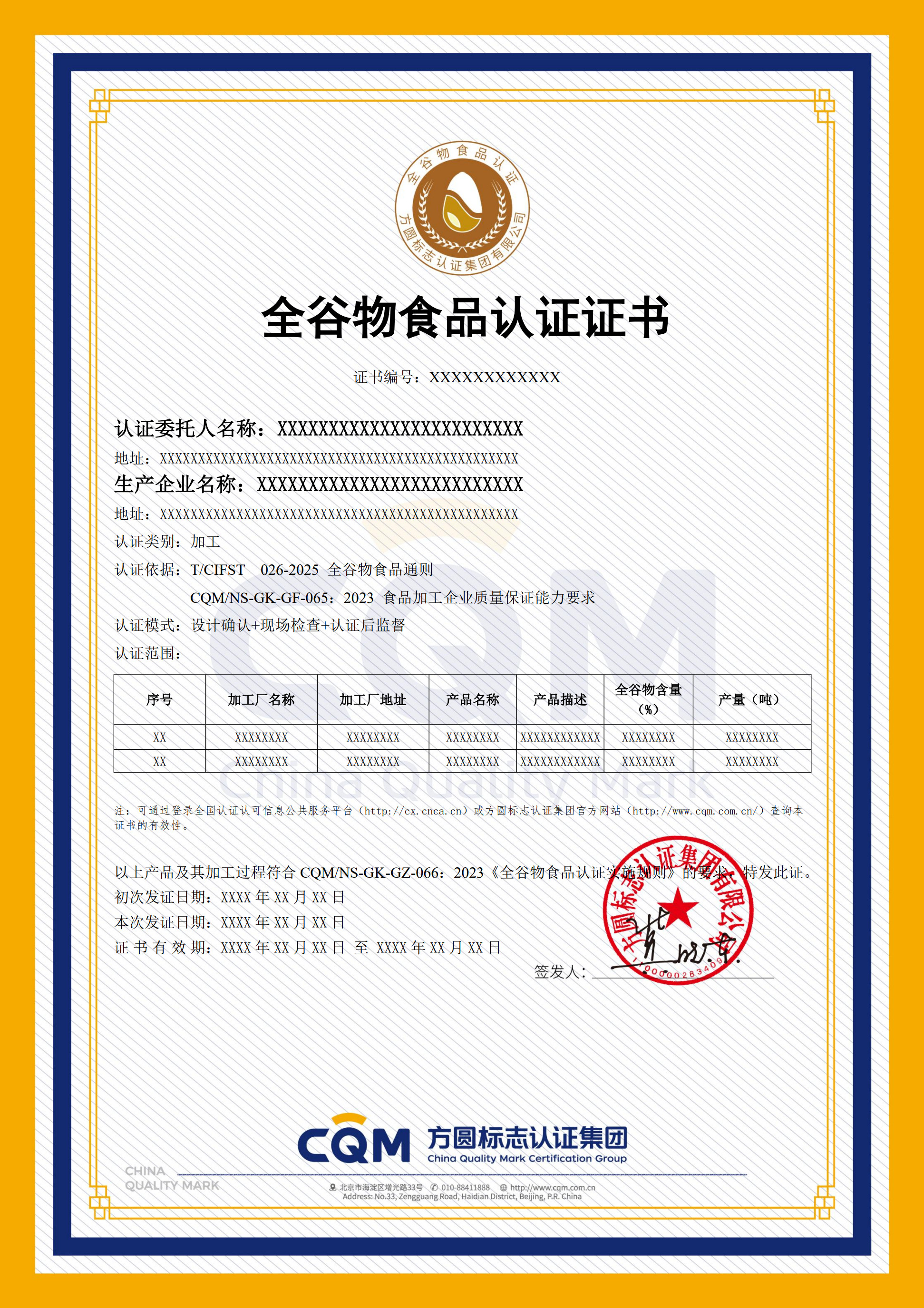 CQM/NS-GK-GZ-066:2023 全谷物食品认证实施规则